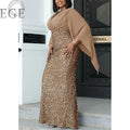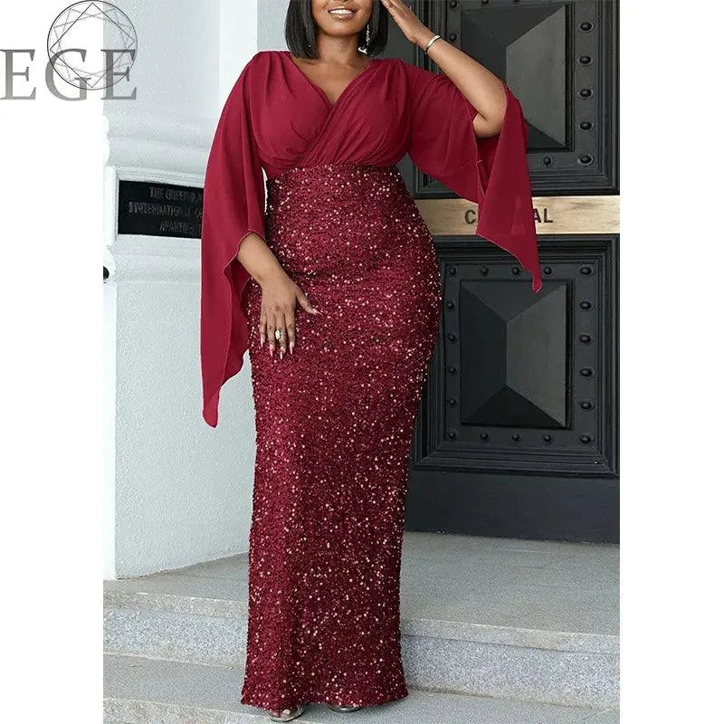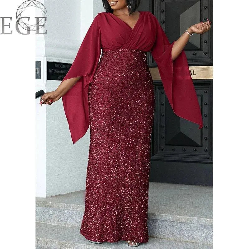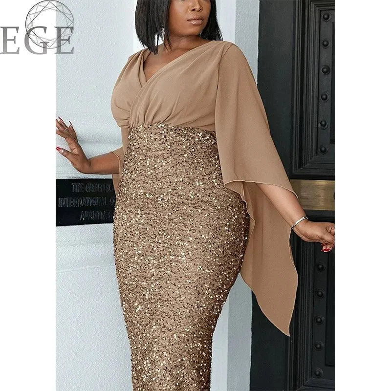 Plus Size Luxury Dress Shiny Chiffon Loose Sherfang Plus Size Elegant Banquet Midi V Neck Dress