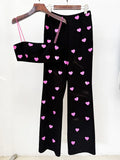 2025 New Spring Women Sexy Sleeveless Heart Sequined Strap Tops Straight Women's set Girls' Birthday Party Fashion Wear