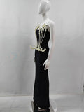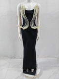 2025 New Spring Women Sexy Strapless Big Beading Bodycon Long Maxi Dress Fashion Celebrate Evening Party Birthday Dress Vestido
