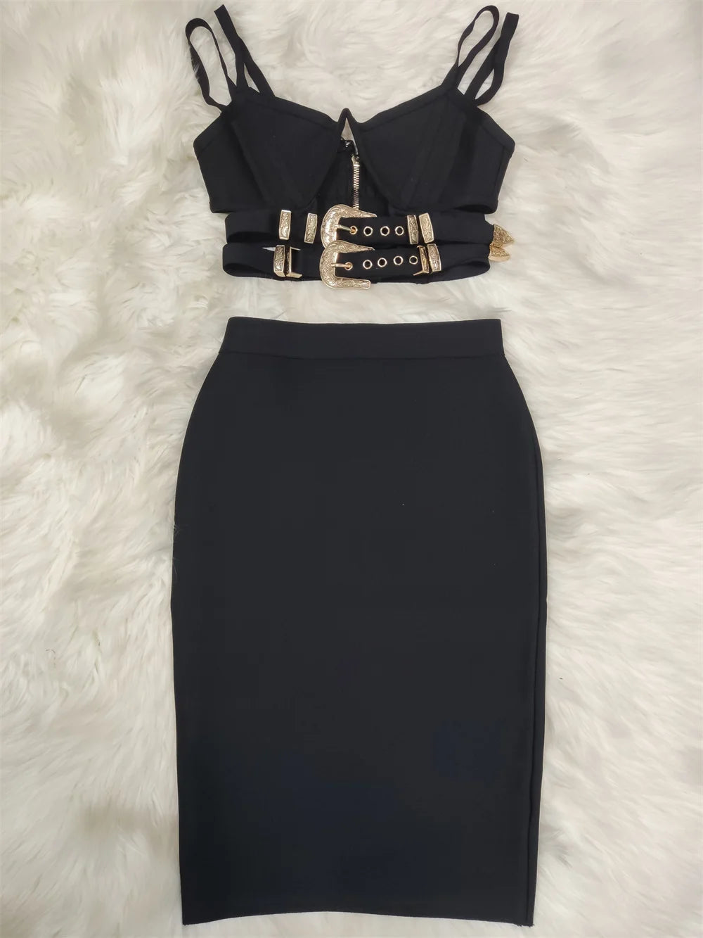 3 Colors Women Sexy Tops Skirts Set Rayon Bandage Fashion Nightclub Party Wear Women's Set High Quality