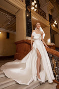 A-line Satin Elegant vestidos de novia Wedding Dress Sleeveless Wedding Gown