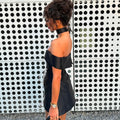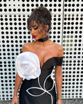 Black Color Women Sexy Off the Shoulder Big Florals Bodycon Mini Bandage Dress Fashion Celebrate Nightclub Party Outfit Vestido