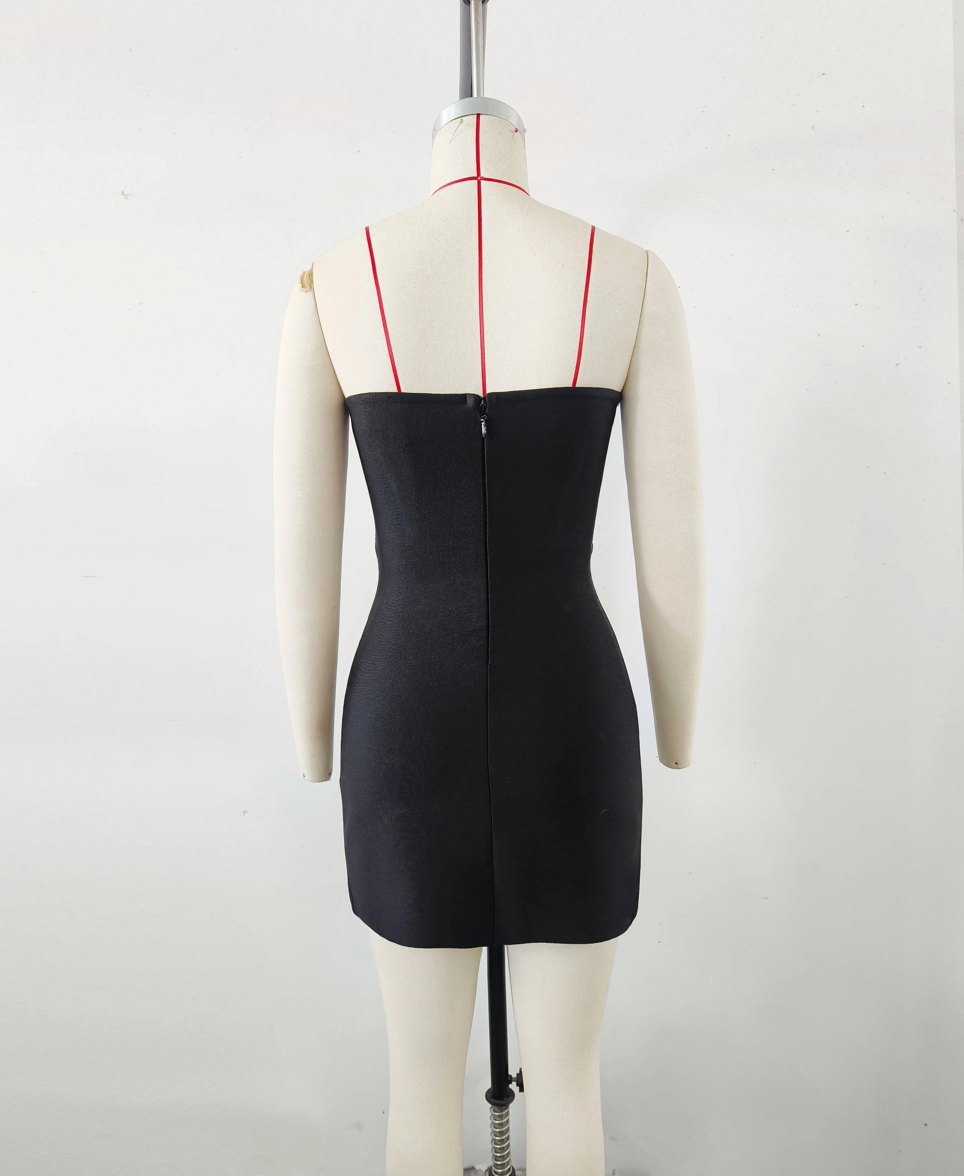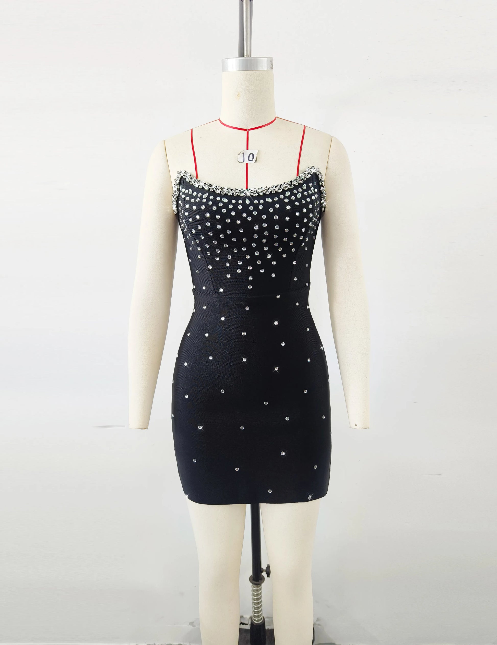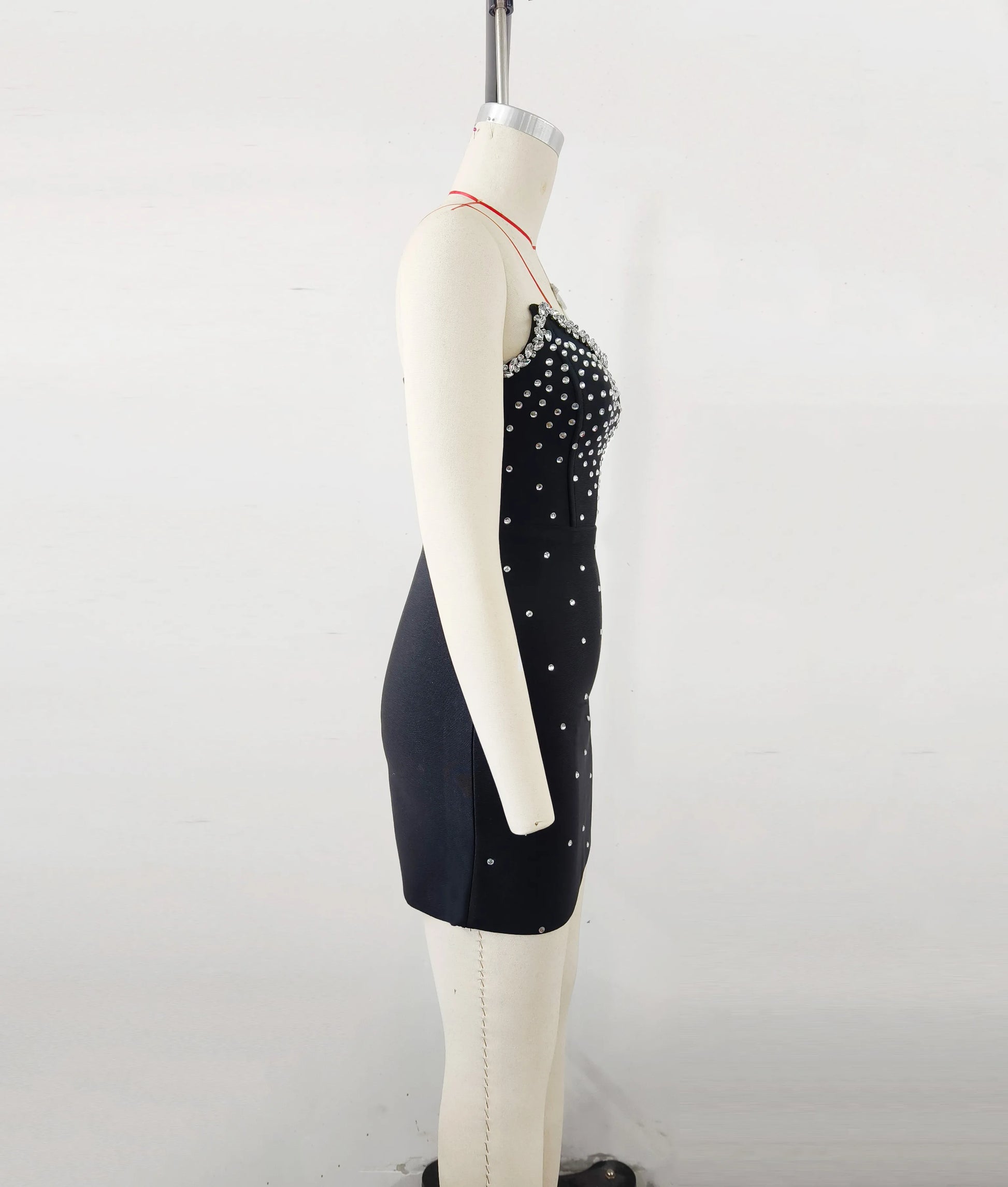 Black Color Women Sexy Strapless Shinning Rhinestones Bodycon Mini Bandage Dress Nightclub Party Celebrate Fashion Outfit
