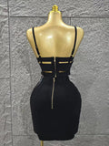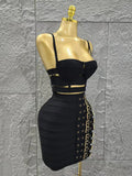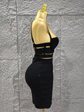 Black Color Women Sleeveless Sexy Strap 2 Pieces Bodycon Mini Bandage Dress Nightclub Party Birthday Fashion Outfit Vestido
