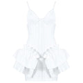 Regardless of the color you select for your dress, the white, black, or ivory lace accents will remain consistent. This applies to designs where the bodice and skirt are in different colors, maintaining a harmonious and sophisticated aesthetic.