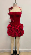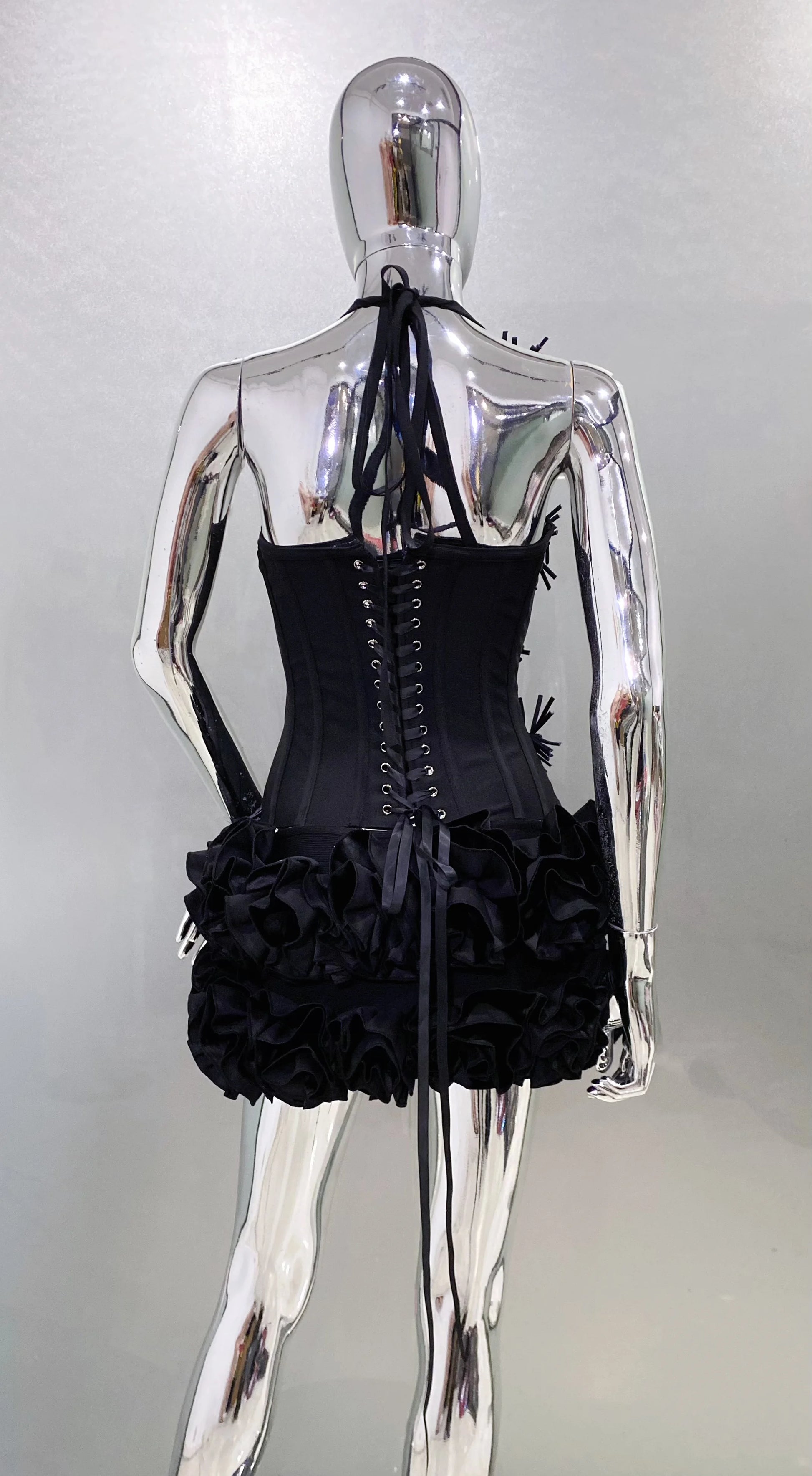 Black Red Women Sexy Strapless Laced-up Tops 2 Pieces Florals Bodycon Mini Bandage Dress Celebrate Nightclub Party Stage Wear
