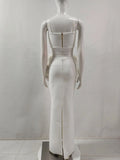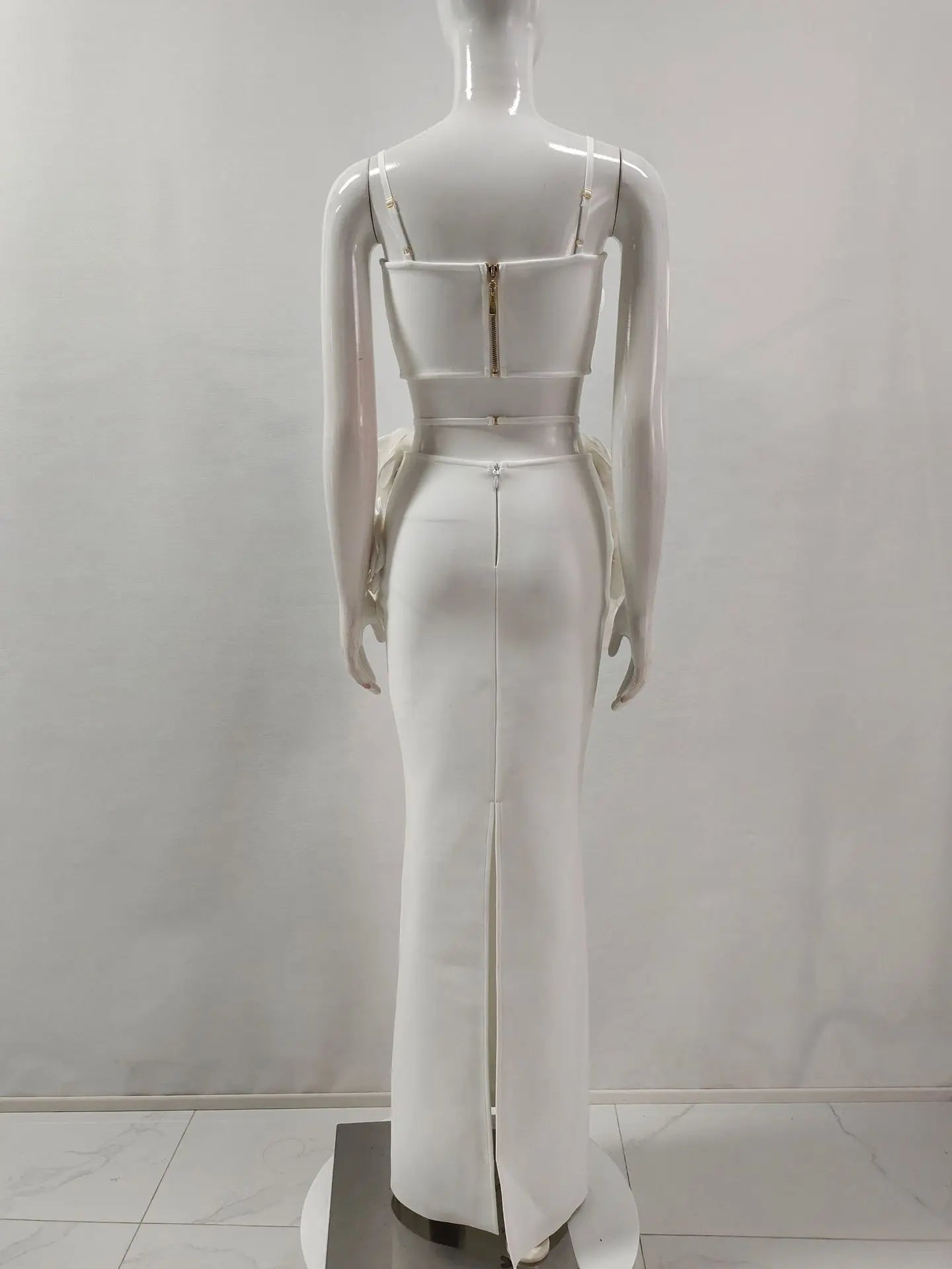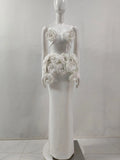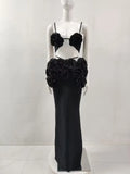 Black White Color Women Sexy Strap Florals 2 Pieces Bodycon Long Dress Celebrate Nightclub Party Bar Singer Performance Costume