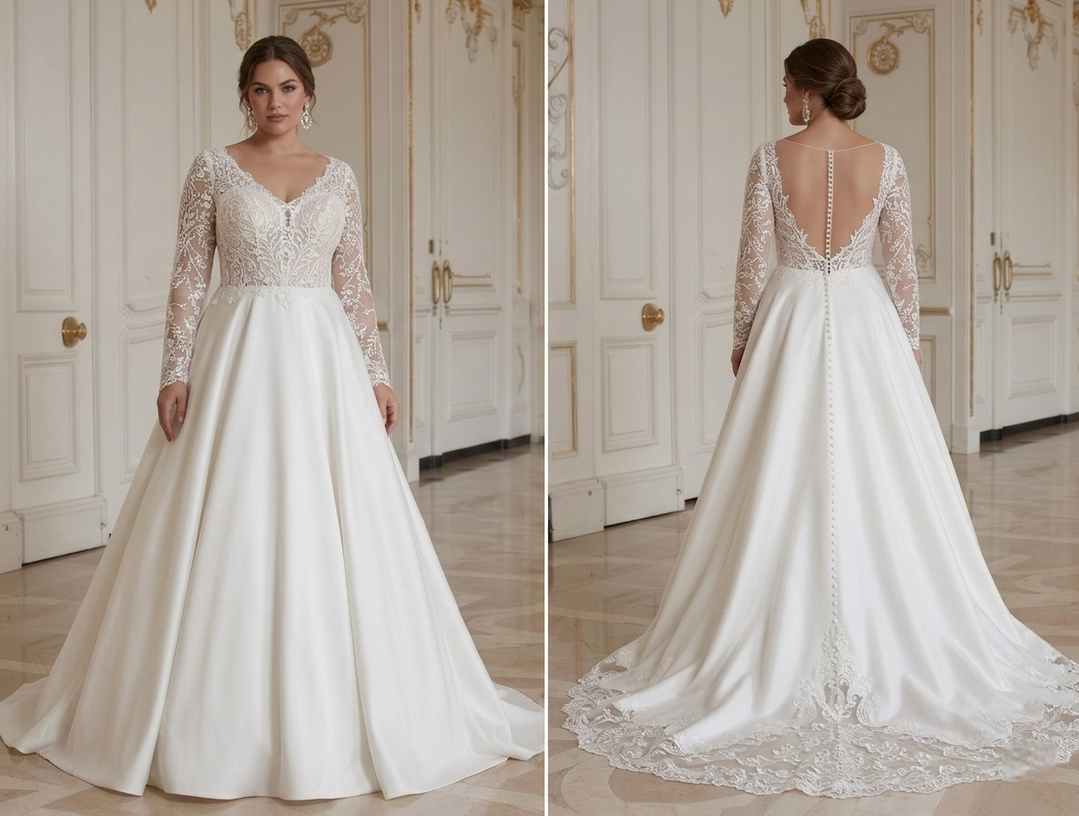 Curvy Bride Long Sleeve Wedding Dress Elegant Style