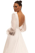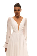 Elegant A-Line Bridal Dress with V-Neckline, Long Sleeves, and Zipper Detail
