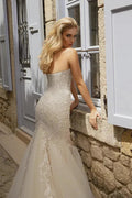 Elegant Mermaid Wedding Gown with a Chic Strapless Halter Neckline, and a Flattering Natural Waistline for a Sophisticated and Breathtaking Bridal Look