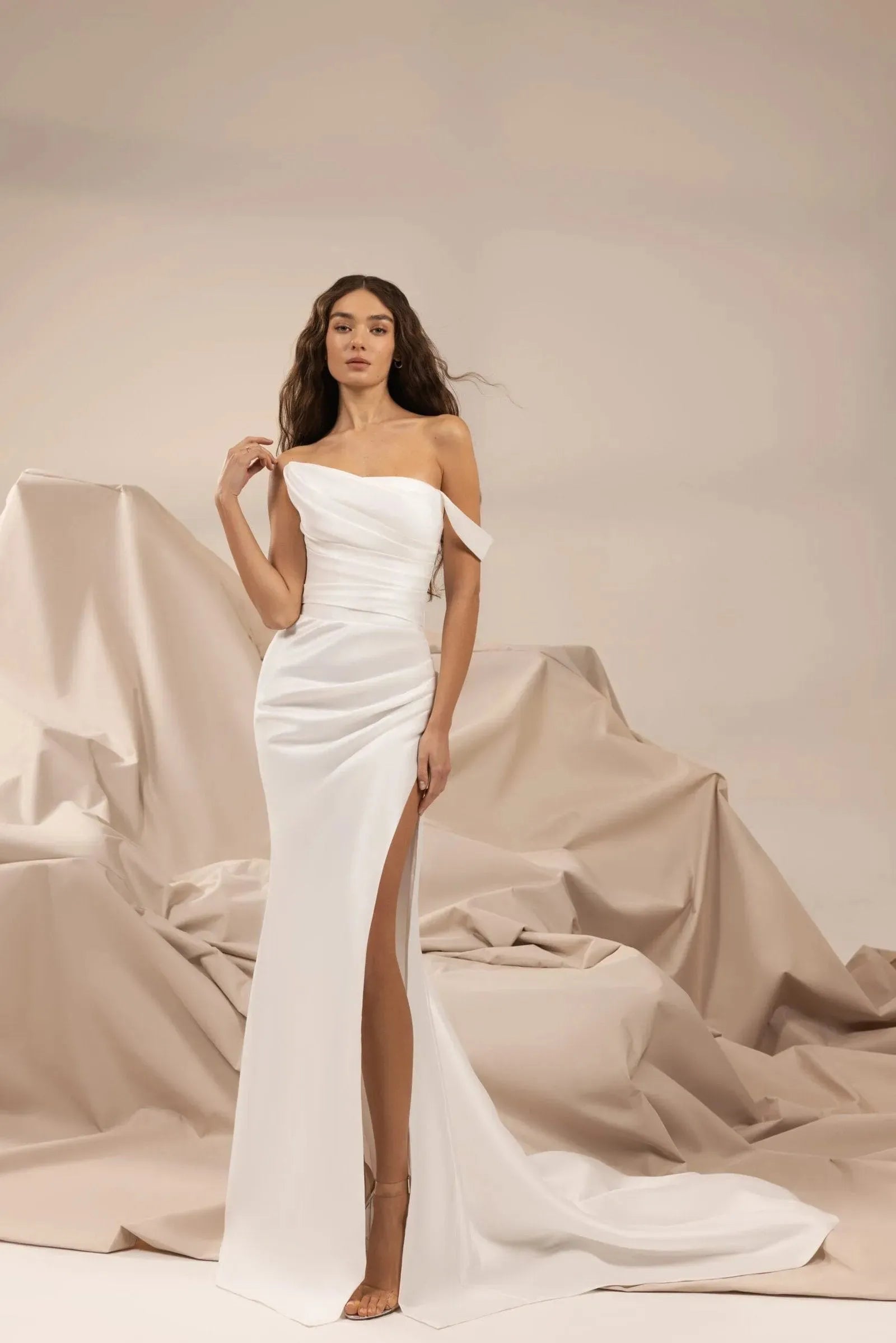 Elegant Minimalist Wedding Dress with Luxurious Satin, Sleek Silhouette & Timeless Design for a Sophisticated and Regal Bridal Look
