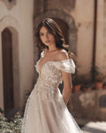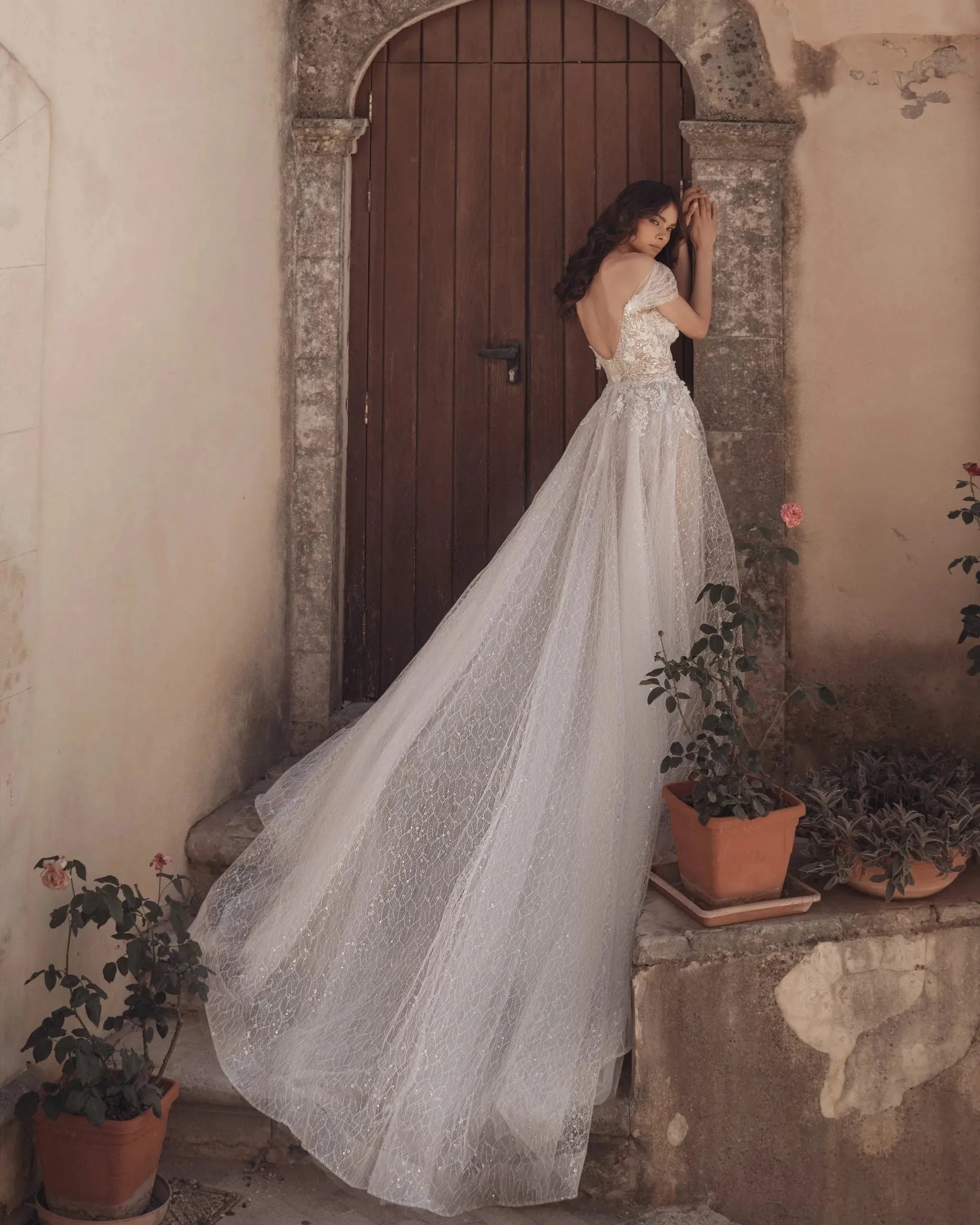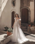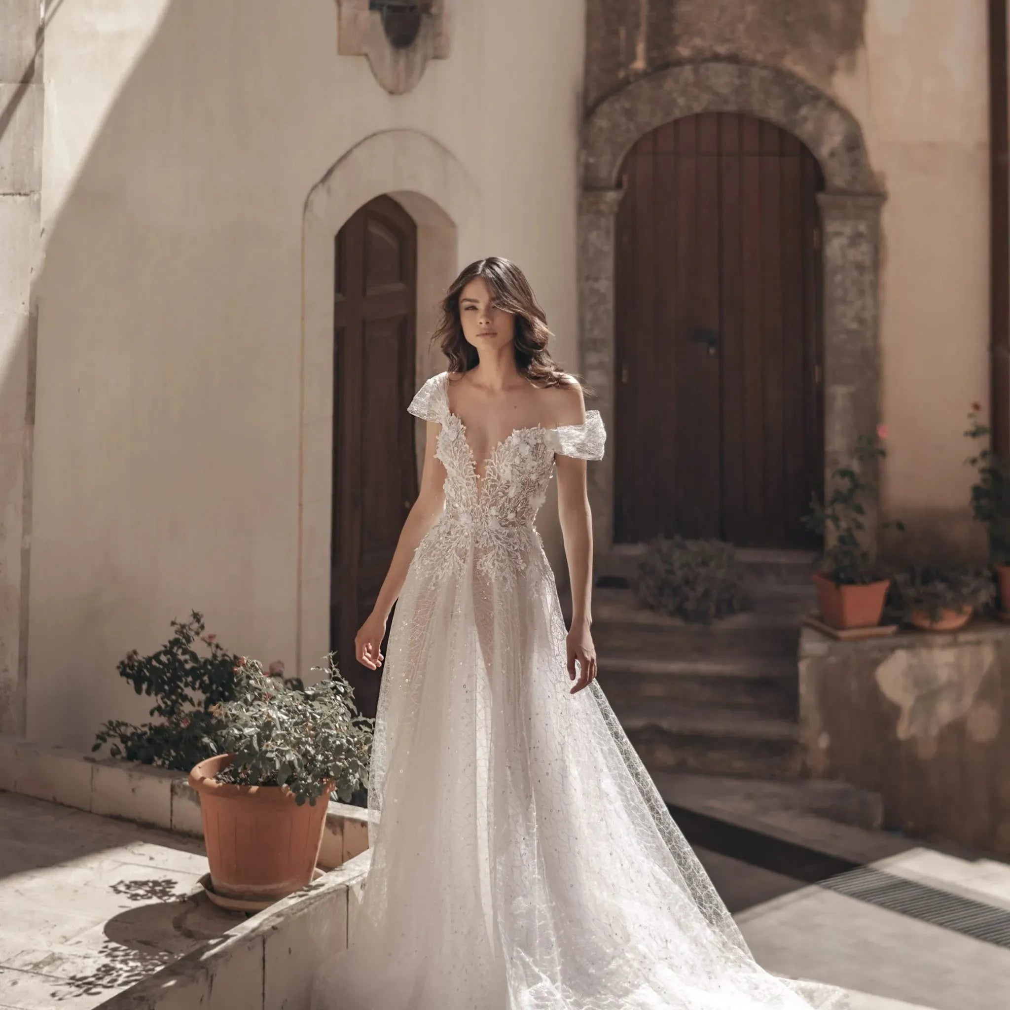 Ethereal A-Line Wedding Gown, Cap Sleeves, and a Flattering V-Neckline for a Timeless and Romantic Bridal Look