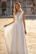 Fashionable O Neck A Line Women's Wedding Dresses Elegant Simple Appliques Lace Bride Gowns Sleeveless Button Vestidos De Novia