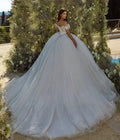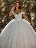Glitter Lace Wedding Dresses Sparkly Off Shoulder A-Line Backless Appliques Bridal Gowns 3D Flowers Princess Bride Dress