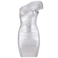 Foil Gold Silver Women One Shoulder Sexy Bodycon Mini Dress Rayon Bandage Fashion Evening Party Outfit Vestido