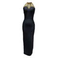 Golden Beading Women Sexy Off the Shoulder Bodycon Long Bandage Dress Fashion Celebrate Evening Party Outfit
