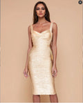 New Slip Gold Print Rayon Bandage Dress Foiling Sexy Celebrity Bodycon Cocktail Party Dress
