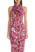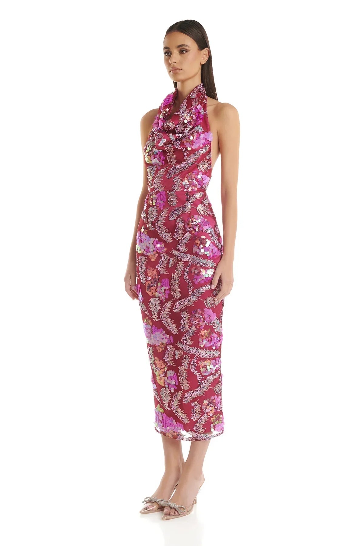Women Sexy Halter Off the Shoulder Shinning Sequins Embroidery Bodycon Mid-calf Dress Elegant Evening Party Dress