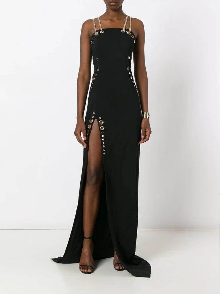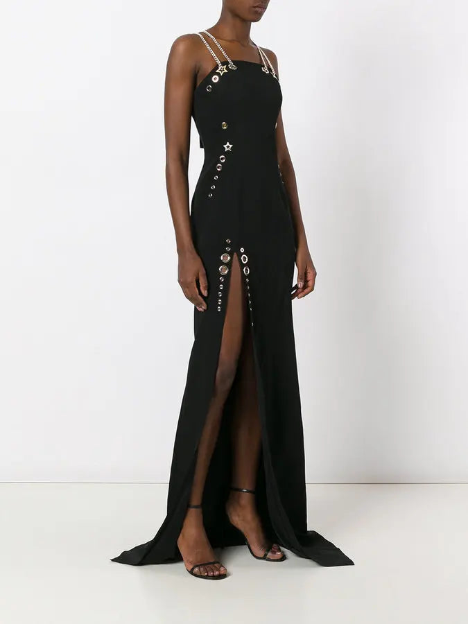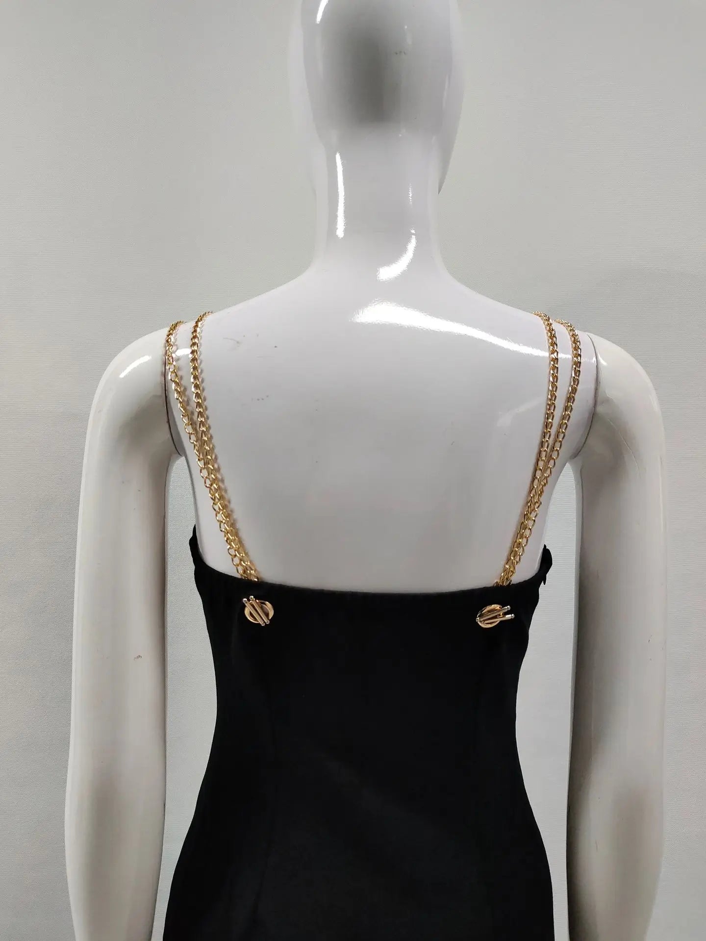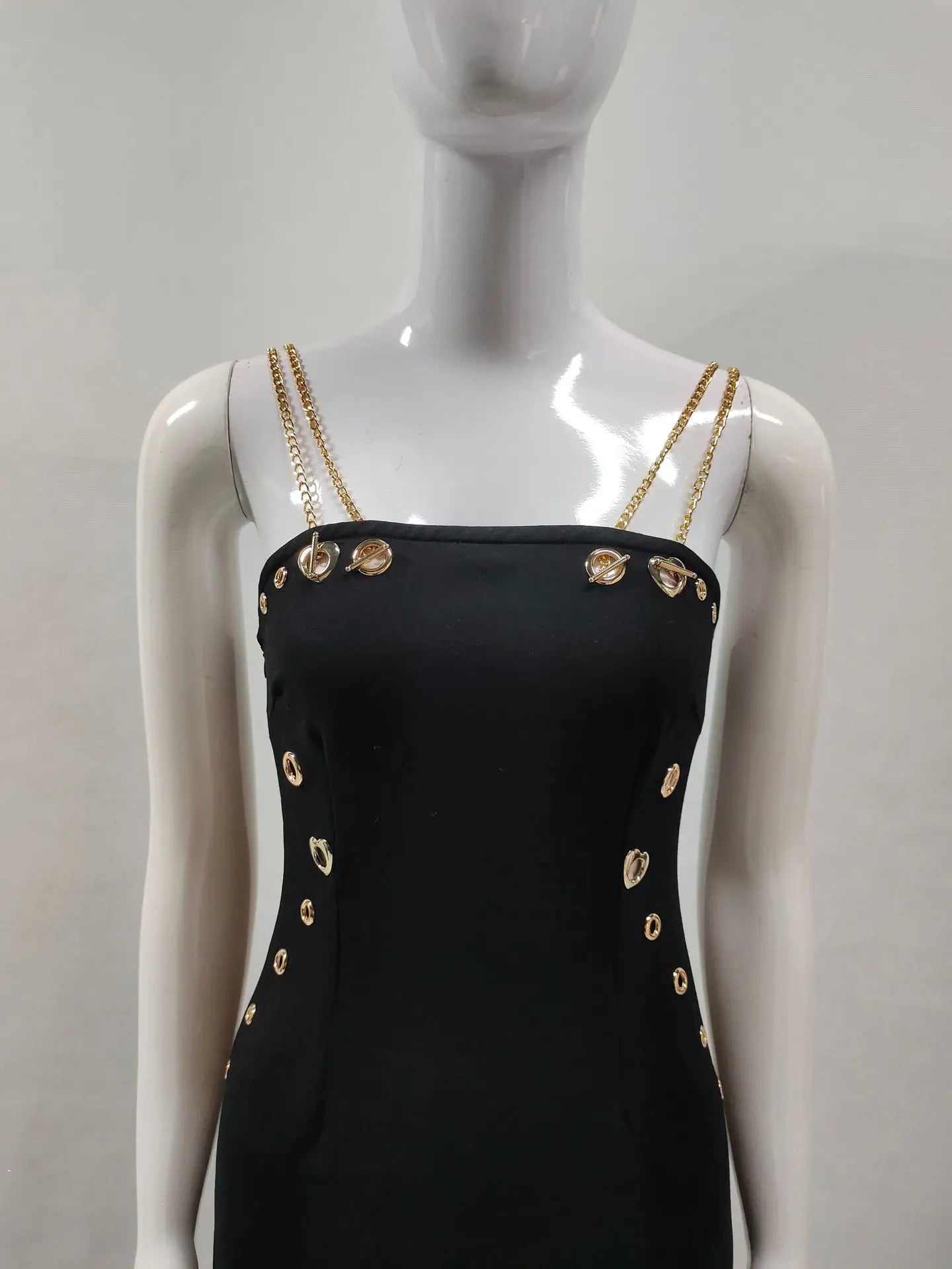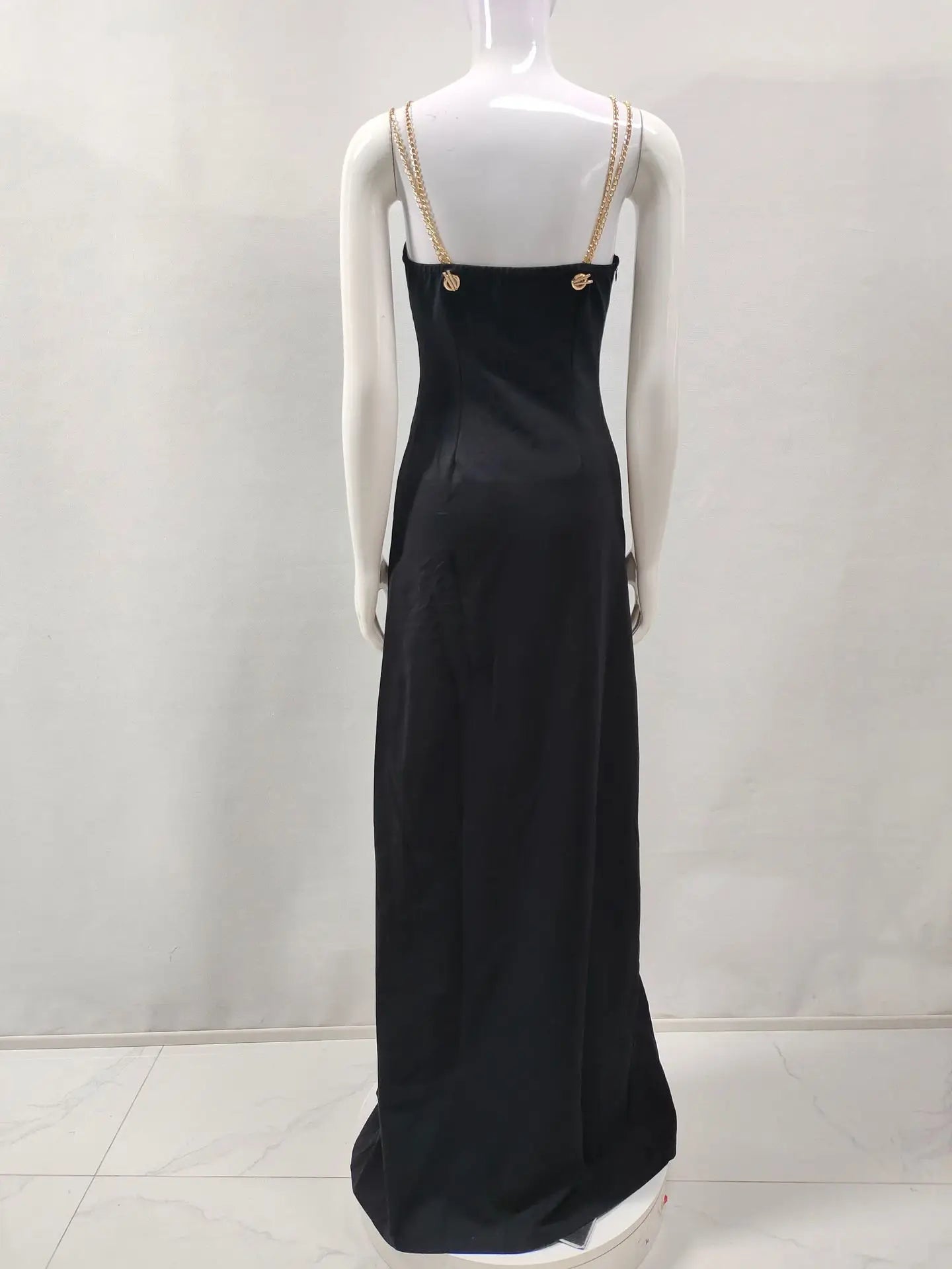 Women Sleeveless Sexy Square Colalr Chain Bodycon Long Dress Elegant Evening Party Fashion Celebrate Dress