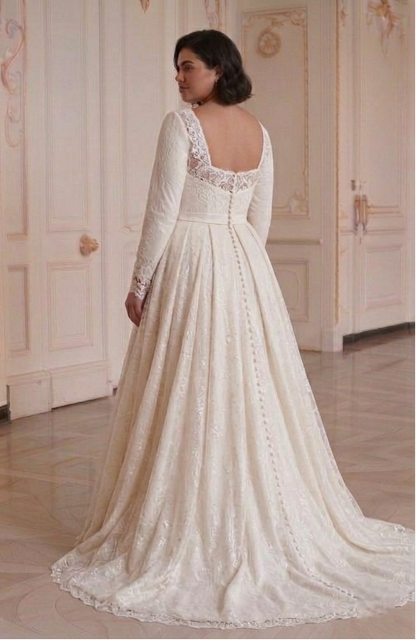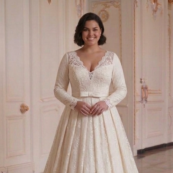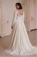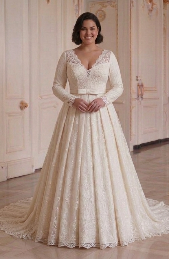 Long Sleeve Wedding Dress For Curvy Women Bridal