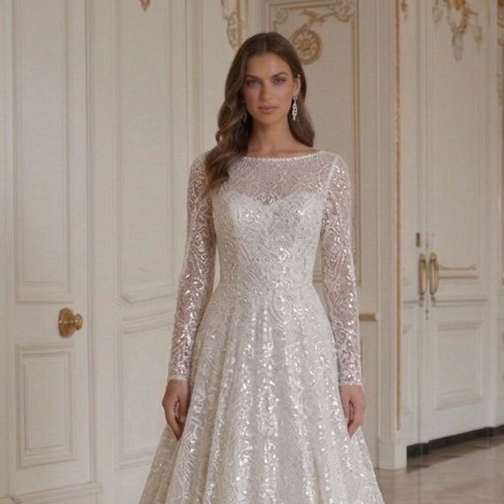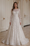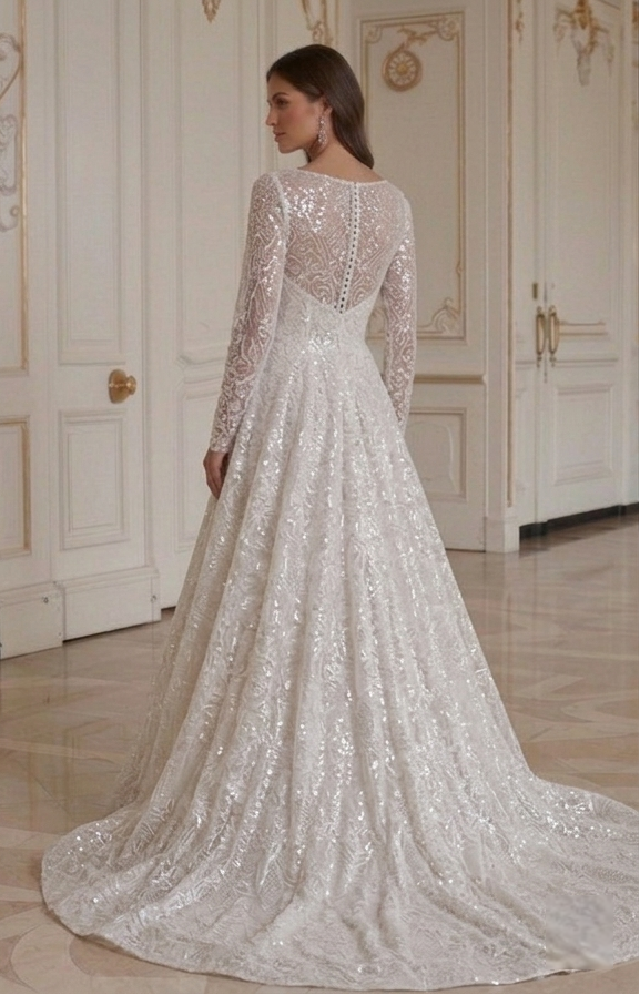 Long Sleeve Wedding Dress With Sequin Lace Bridal