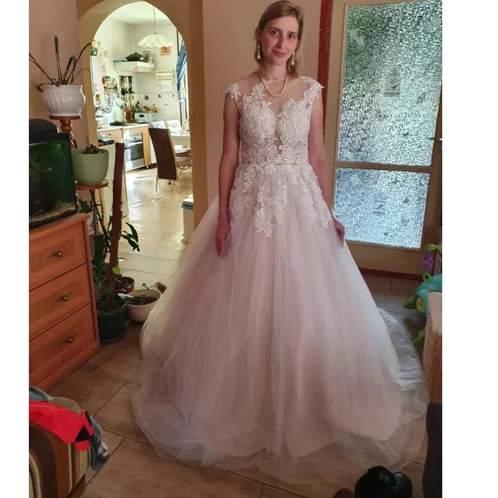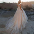Scoop Lace Applique A Line Wedding Dresses Sleeveless Tulle Boho Bridal Gowns Long Train Elegant Princess Dresses