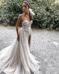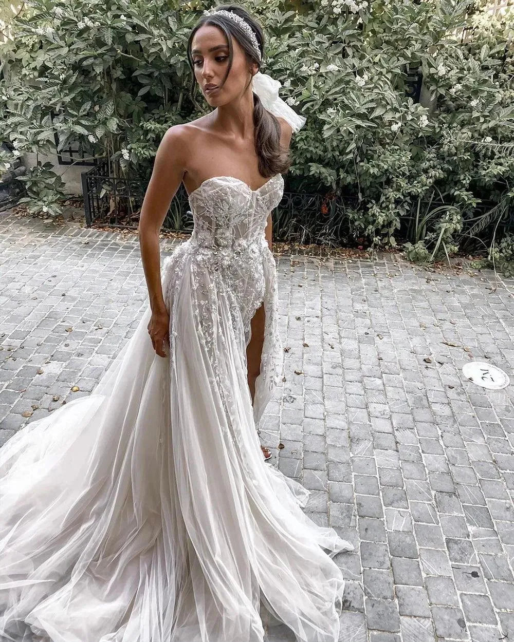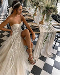 Sexy Beach Wedding Dresses For Bride Elegant Lace Boho Wedding Gowns Strapless Sleeveless High Split Princess Dresses