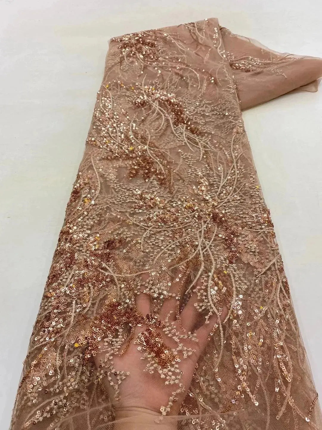 Luxury Pink French Tulle Net Sequins Lace Fabric African Lace Fabric 5 Yards For Nigeria Wedding Party Dress