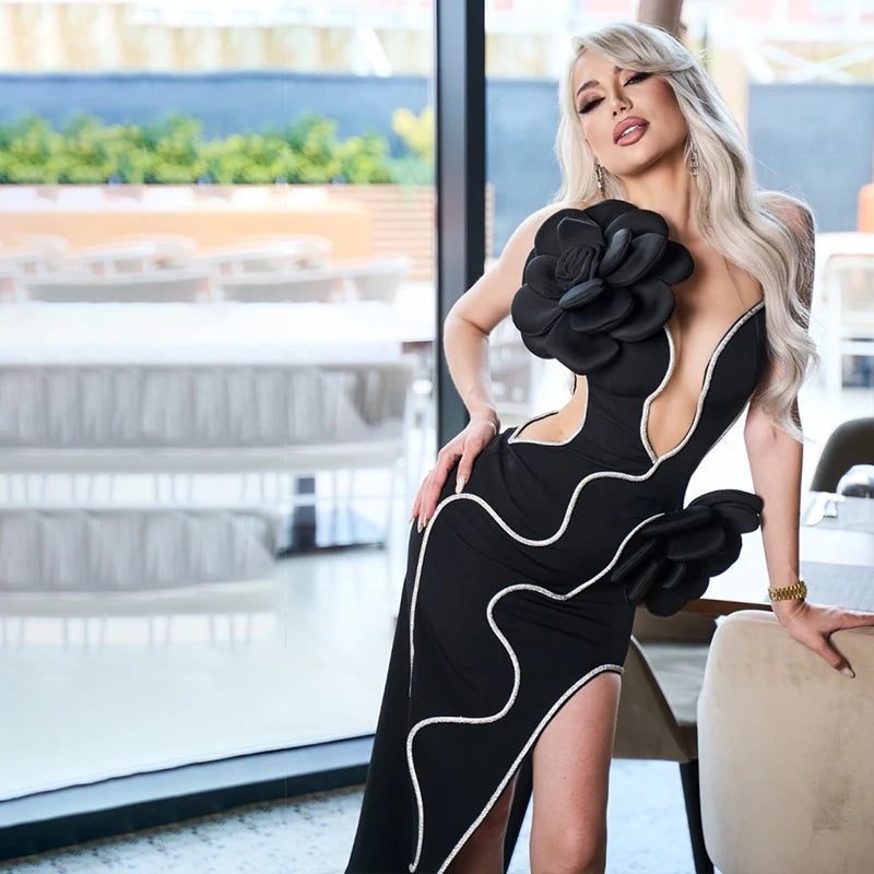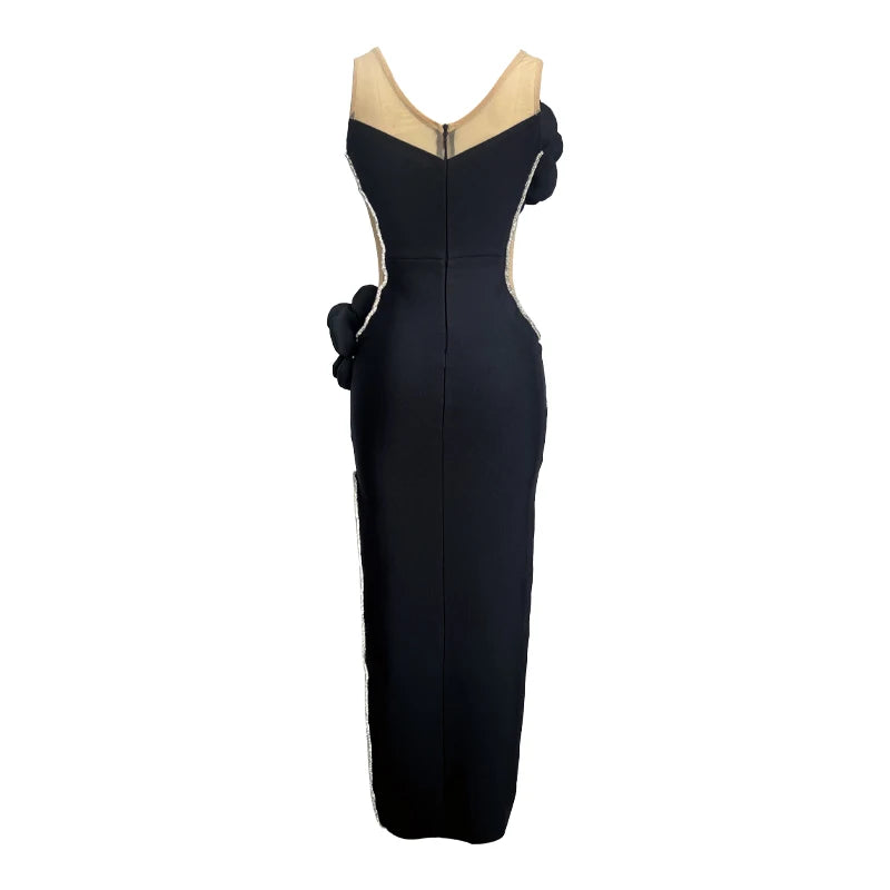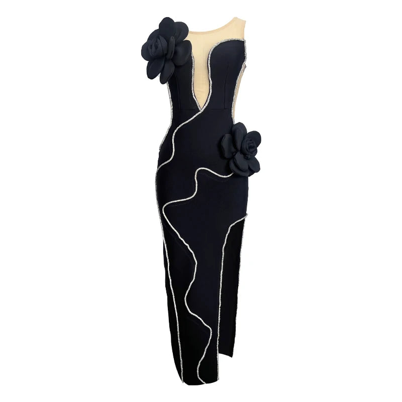 Women Sleeveless Sexy Big Florals Bodycon Bandage Long Dress Celebrate Nightclub Party Evening Cocktail Dress