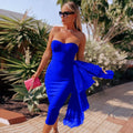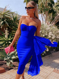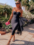 New Pink Color Women Strapless Sexy Ruffles Bodyocn Mid-calf Dress Rayon Bandage Celebrate Birthday Party Dress Wholesale