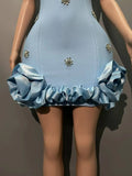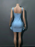 New STyle Skyblue Women Sleeveless Big O-Neck Bodycon Mini Bandage Dress Ruffles Cute Birthday Party Celebrate Dress