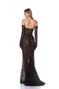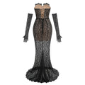 New Summer Black Color Women Sexy Strapless Lace Floor-length Mermaid Dress Gloves Elegant Evening Party Prom Outfit
