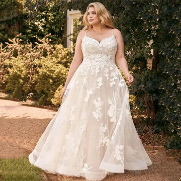 Pastoral Wedding Dresses For Woman Spaghetti Straps Backless Bridal Gown Applique A-Line Elegant Vestido De Noiva Plus Size