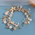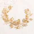 Premium Touch Handmade Gold Leaf Pearl Elegant Wedding Bride Hair Makeup Tiara Headbands For Women