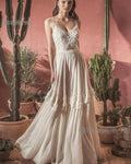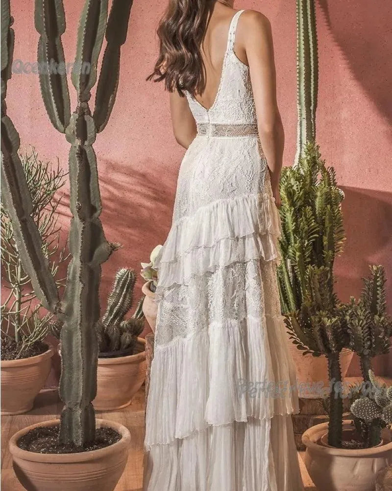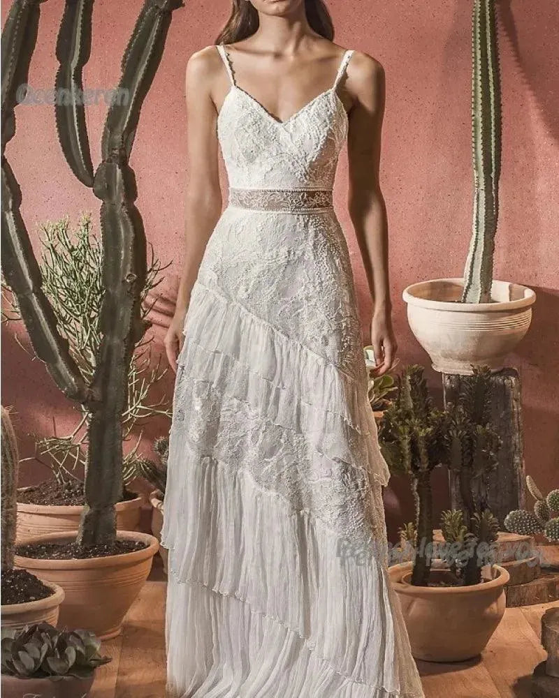 Qcenkeren свадебное платье vestidos de novia V-Neck Boho Style Wedding Dress Tiered Tulle Spaghtti Strap Bridal Gown For Women
