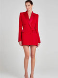 Red Color Women Long Sleeve Sexy V-Neck Bodycon Blazer Dress Celebrate Evening Party Christmas Wedding Mermaid Dress Wholesale
