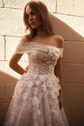 Romantic 3D flowers Wedding Dress Dreamy Customized A-line Lace Dress For Bride Graceful Shiny Bridal Gown