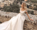 Romantic A-Line Wedding Gown, Off-Shoulder Sleeves, and a Flattering Natural Waistline for an Enchanting Bridal Look