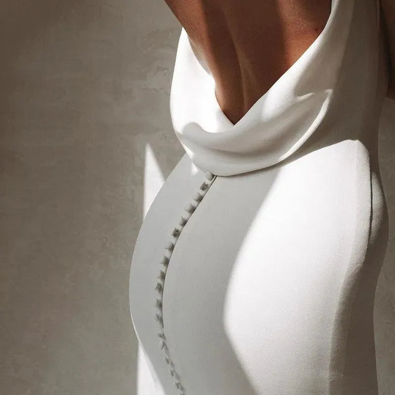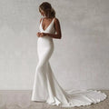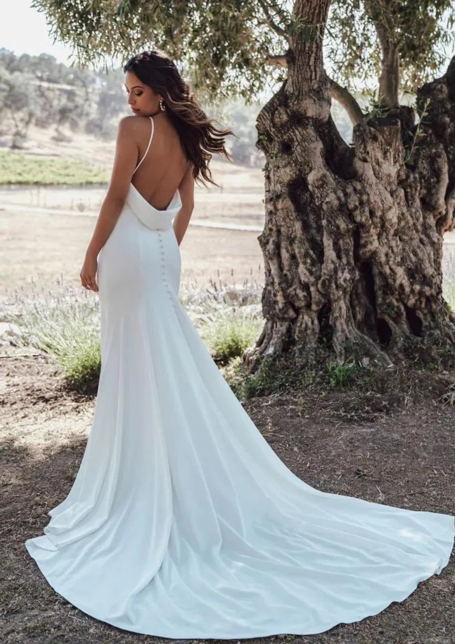 Sexy Mermaid Wedding Dress V-Neck Open Back Boho Wedding Gown Simple Plain Long Train Buttons Beach Bridal Dress Robe De Mariee