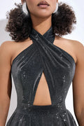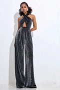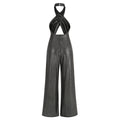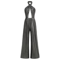 Silver Color Women Sexy Halter Backless Keyholes Slim Jumpsuit Celebrate Nightclub Party Birthday Vacation Fashion Wear