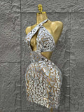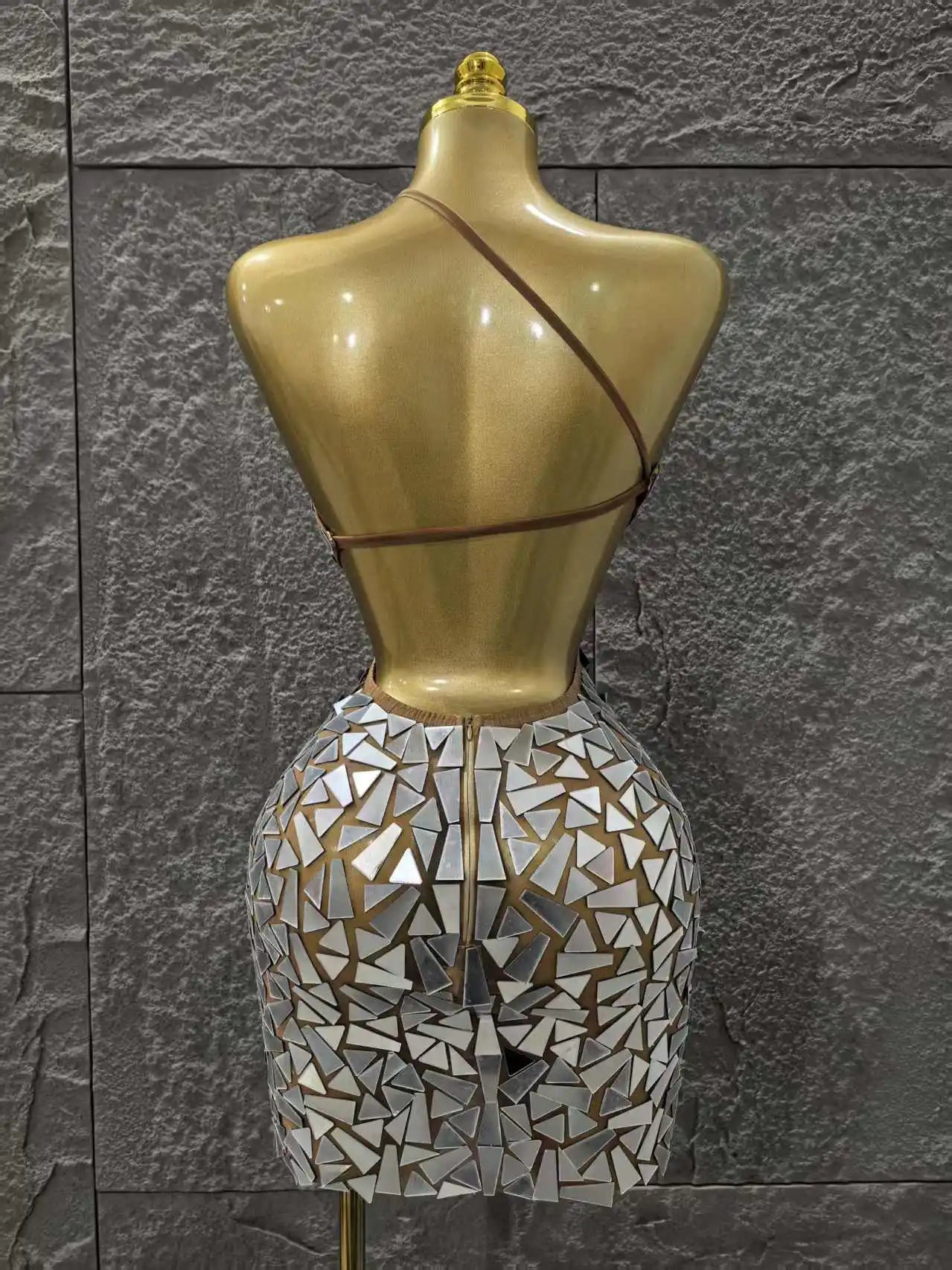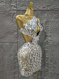 Silver Color Women Sexy One Shoulder Shinning Mirrors Bodycon Mini Dress Nightclub Party Celebrate Birthday Photo Shoot Dress