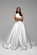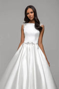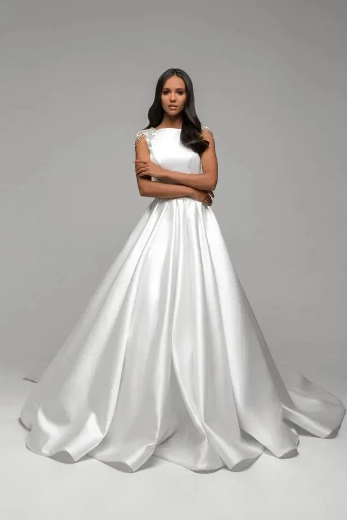 Simple A-Line Wedding Dress with Spaghetti Straps, Boat Neckline, and Lace Embellishments for a Chic Bridal Look