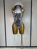 Sprakly Silver Bodysuit Sexy Two Pieces Outfit Dancer Birthday Evening Party Celebrate Performance Singer Stage Perform Outfit
