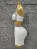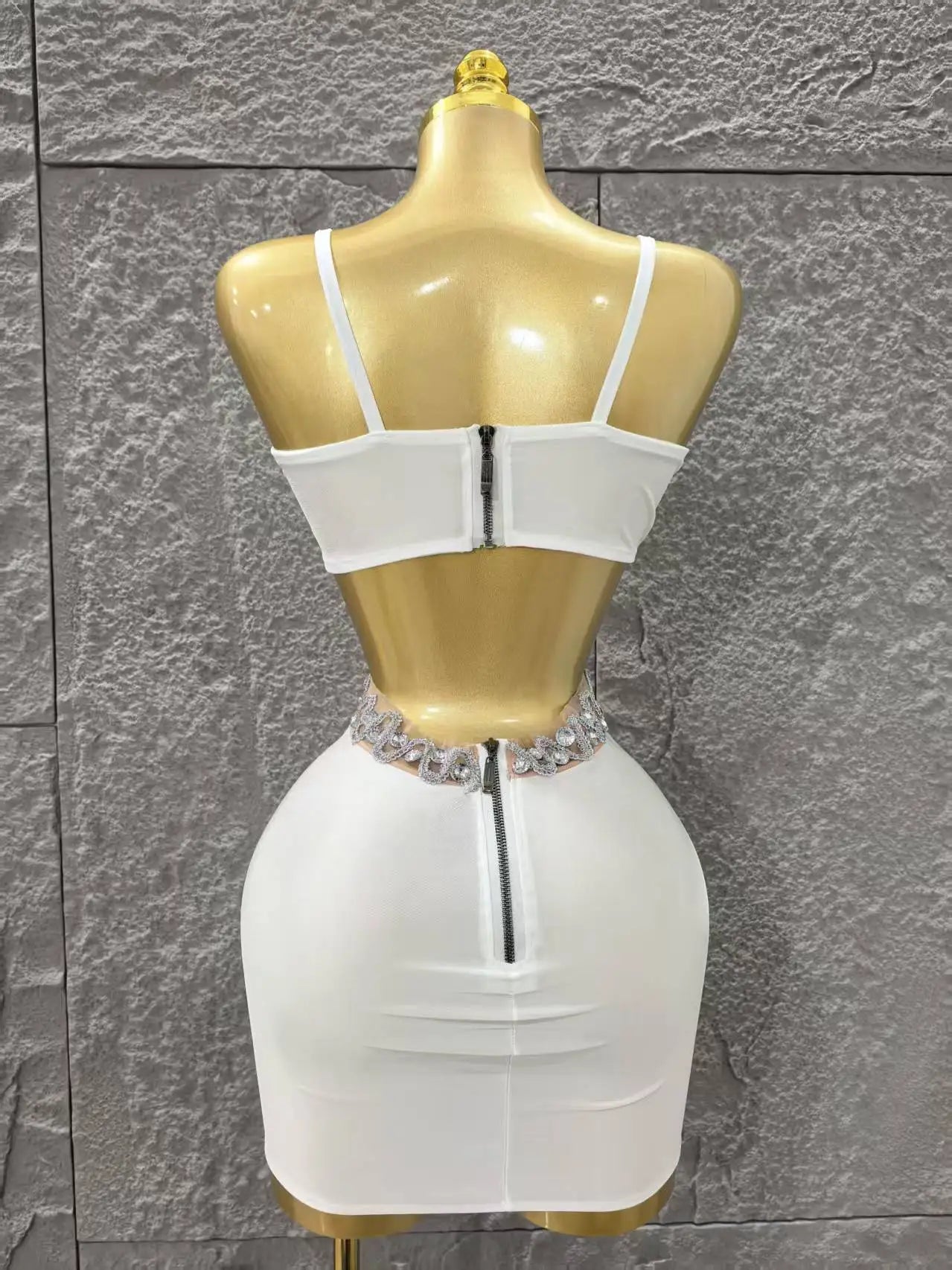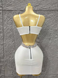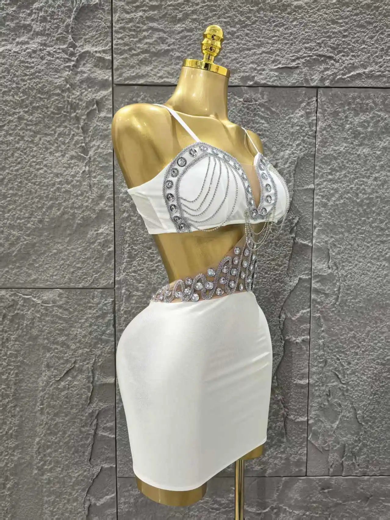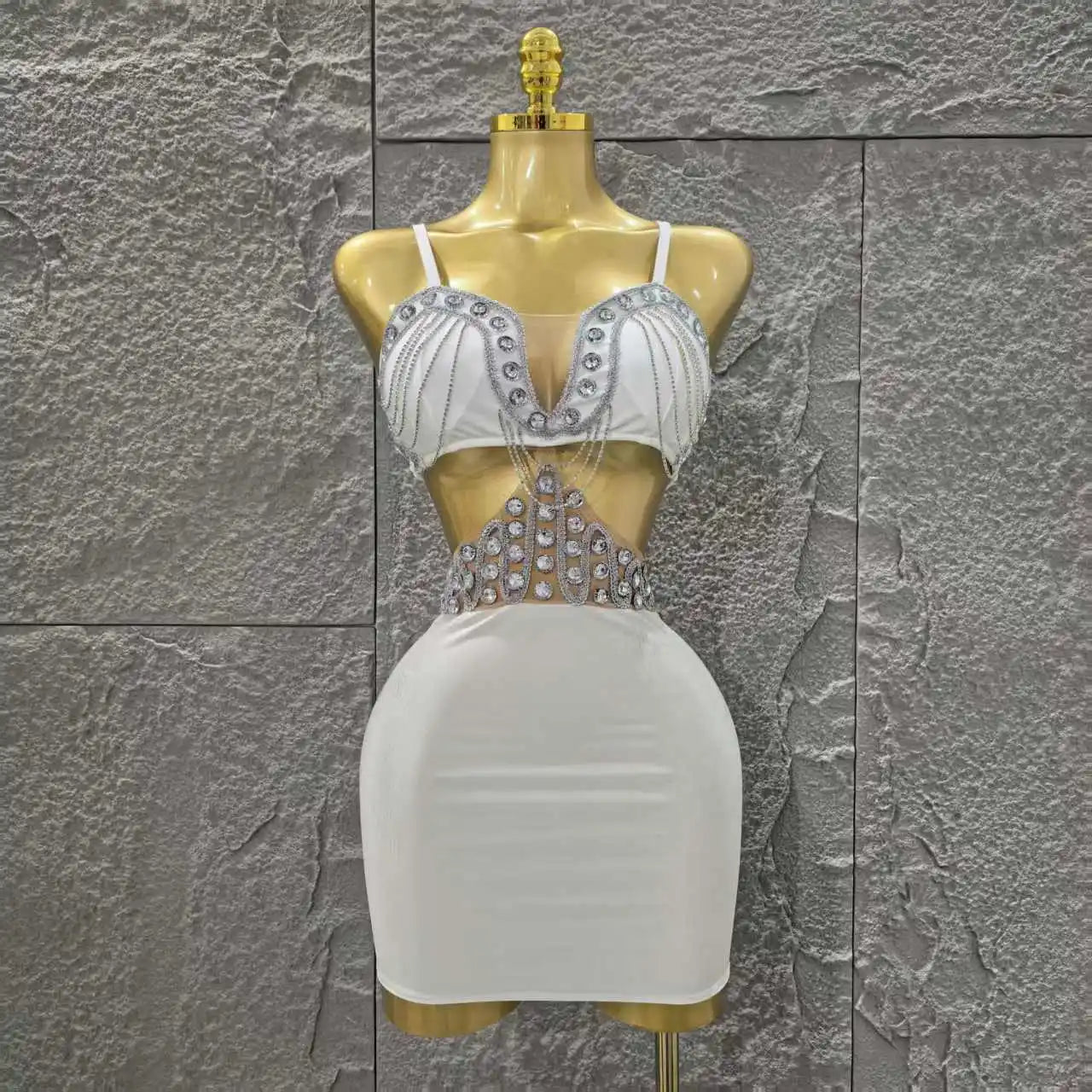 STOCK White Color Women Sleeveless Sexy Shinning Diamond Bodycon Mini Dress Birthday Party Celebrate Nightclub Outfit Vestido