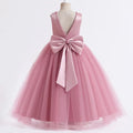 Teen Girls Blue Princess Dress New Fashion Children Long Robe Clothes Kids Birthday Party Vestido Flower Girl Big Bow Ball Gown