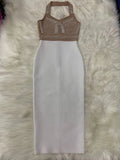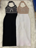 Top Quality High Street White Black Sexy Off Shoulder Sleeveless Beading Shining Knee Length Bandage Dress 2021 Celebrity Party