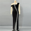Top Quality Women Sexy Strapless Shinning Rhinestones Bodycon Long Bandage Dress Celebrate Nightclub Party Birthday Outfit