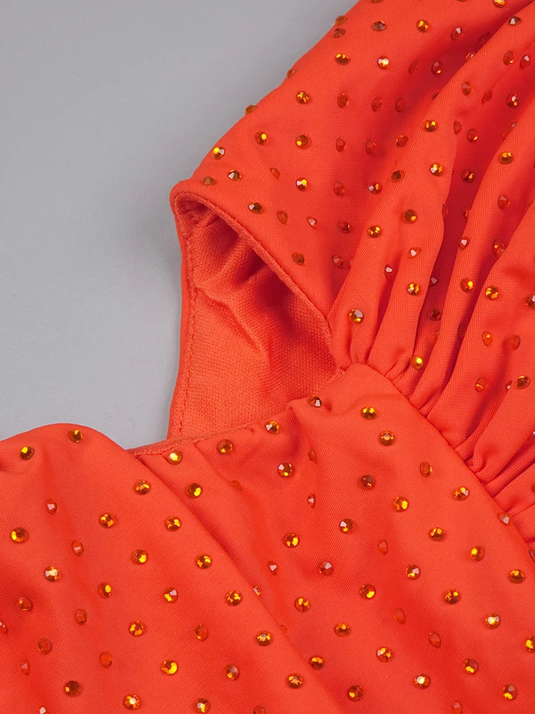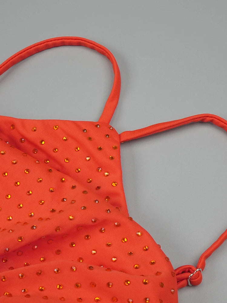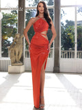 VC Orange Halter Sleeveless Cut Out Log Dress Diamonds Maxi Bodycon Elegant Party Evening Stage Performance Vestido