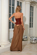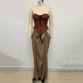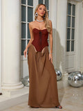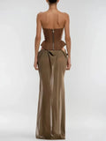 Vintage Off Shoulder Sleeveless Long Dresses Sexy Women Sheath Lace Up Patchwork Long Dress Elegant Summer For 2025 Vestidos