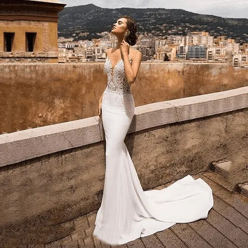 Vintage Wedding Dresses Classic Bridal Gowns Lace Appliques Satin Sheath Mermaid Sleeveless Backless Robes Vestidos De Novia